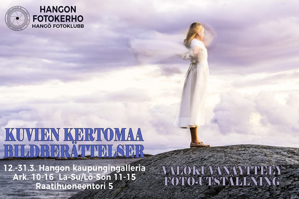 KUVIEN KERTOMAA – BILDBERÄTTELSER, Näyttely esillä kahden viikon ajan maaliskuussa 2026 paikkana Hangon kaupungintalon galleria, Raatihuoneentori 5, 10900 Hanko.